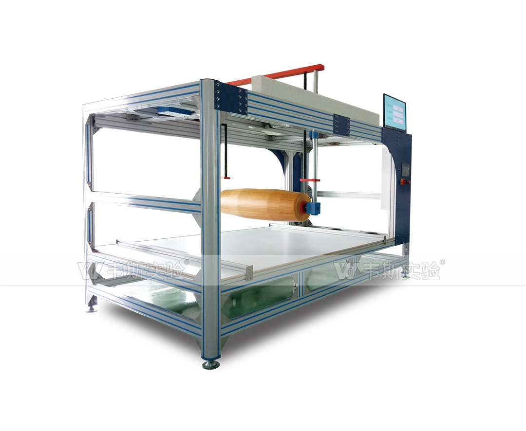 采用一個滾動式加載模塊水平放置在床墊規定的加載部位,以一定頻率滾動,對床墊進行往復加載,以檢驗床墊對長期重復性滾動載荷的承受能力。